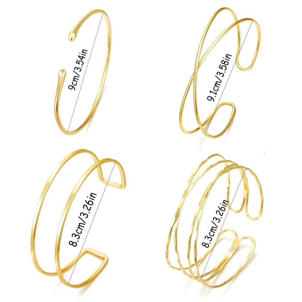Kit com 4 braceletes de braço dourados ajustáveis, elegantes e modernos. O acessório ideal para realçar seu look. Compre online com entrega rápida!
